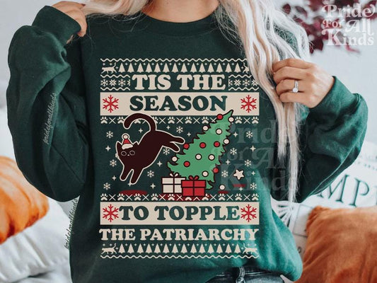 Tis the season to topple the patriarchy | feminist christmas sweater | cat christmas sweater | cat sweatshirt | childless cat lady | xmas