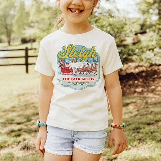 Sleigh the patriarchy kids and toddler shirt | feminist kids shirt | feminist christmas | smash the patriarchy | burn the patriarchy leftist