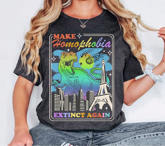 Make homophobia extinct shirt | say gay | stop transphobia | protect trans kids | queer riot | trans youth | funny gay shirt | retro lesbian