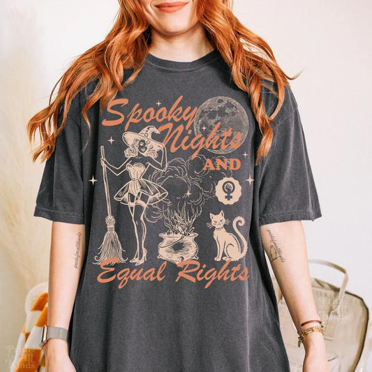 Spooky nights and equal rights | feminist halloween shirt | burn the patriarchy | retro feminist | halloween cat shirt | hex the patriarchy