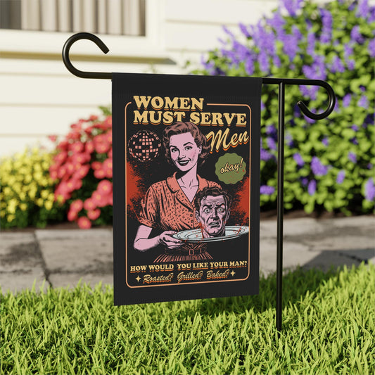 Women must serve men garden flag | feminist halloween flag | feminist fall | autumn feminist | feminist witch flag | leftist garden flag