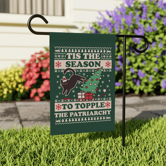 Tis the season to topple the patriarchy flag | christmas cat flag | childless cat lady christmas gift | cat lady house flag | retro cat xmas