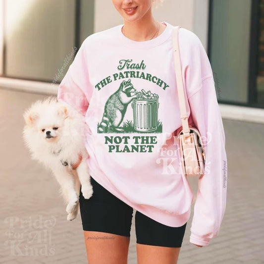Trash the patriarchy not the planet sweatshirt | funny feminist | raccoon possum meme | leftist | activism | pro choice | abortion | liberal