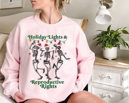 Holiday lights and reproductive rights sweatshirt